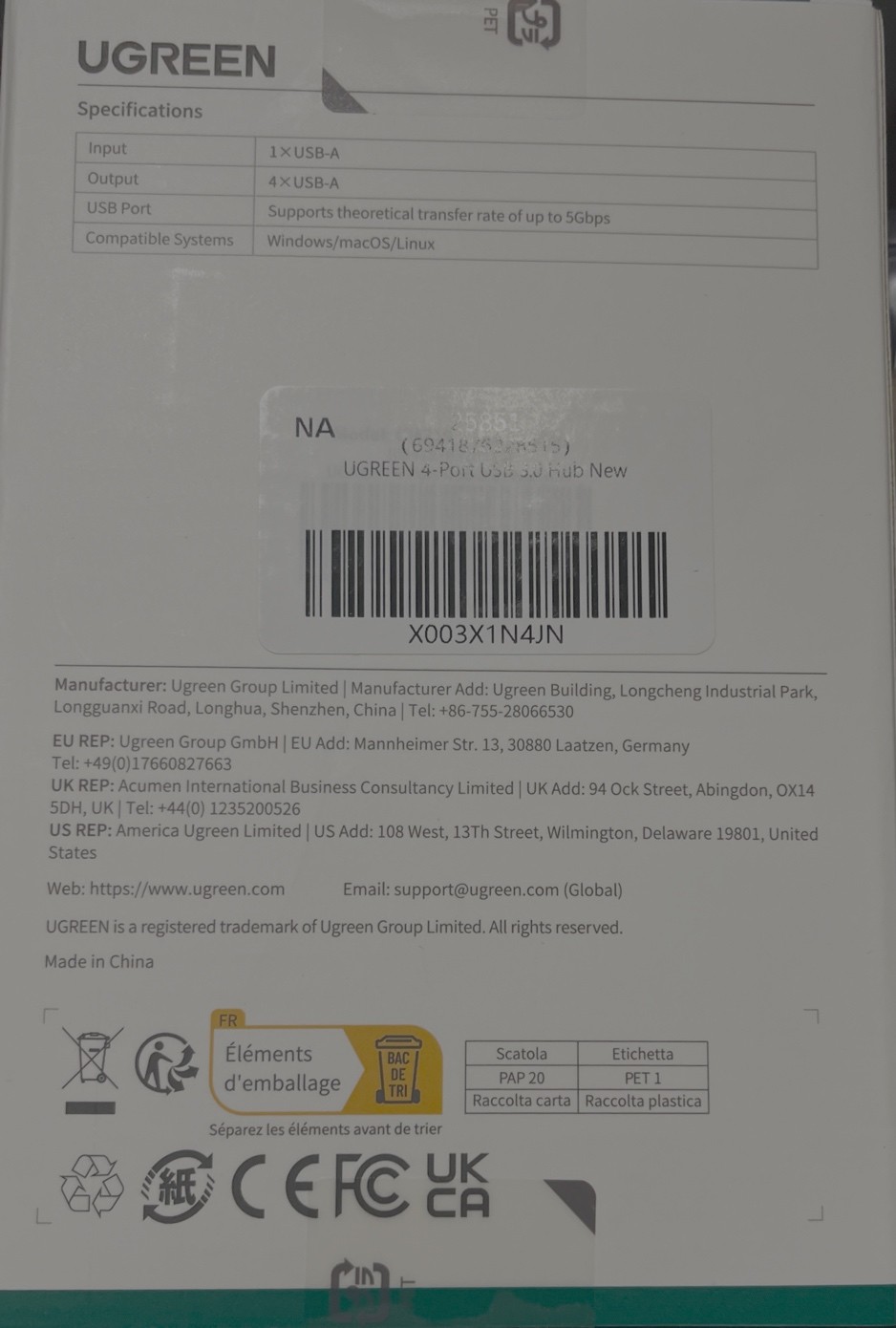 UGREEN 4-Port USB 3.0 Hub
