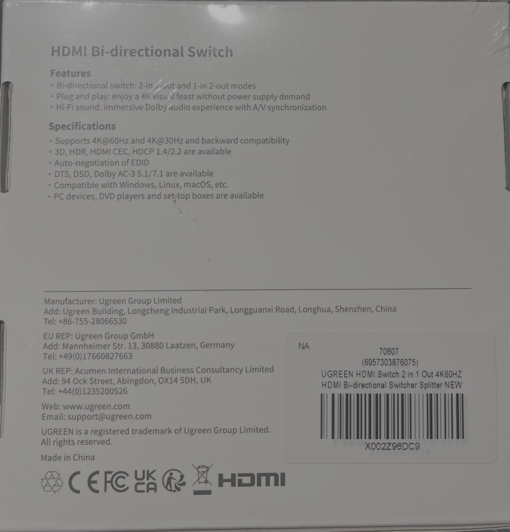UGREEN HDMI Bi-directional Switch