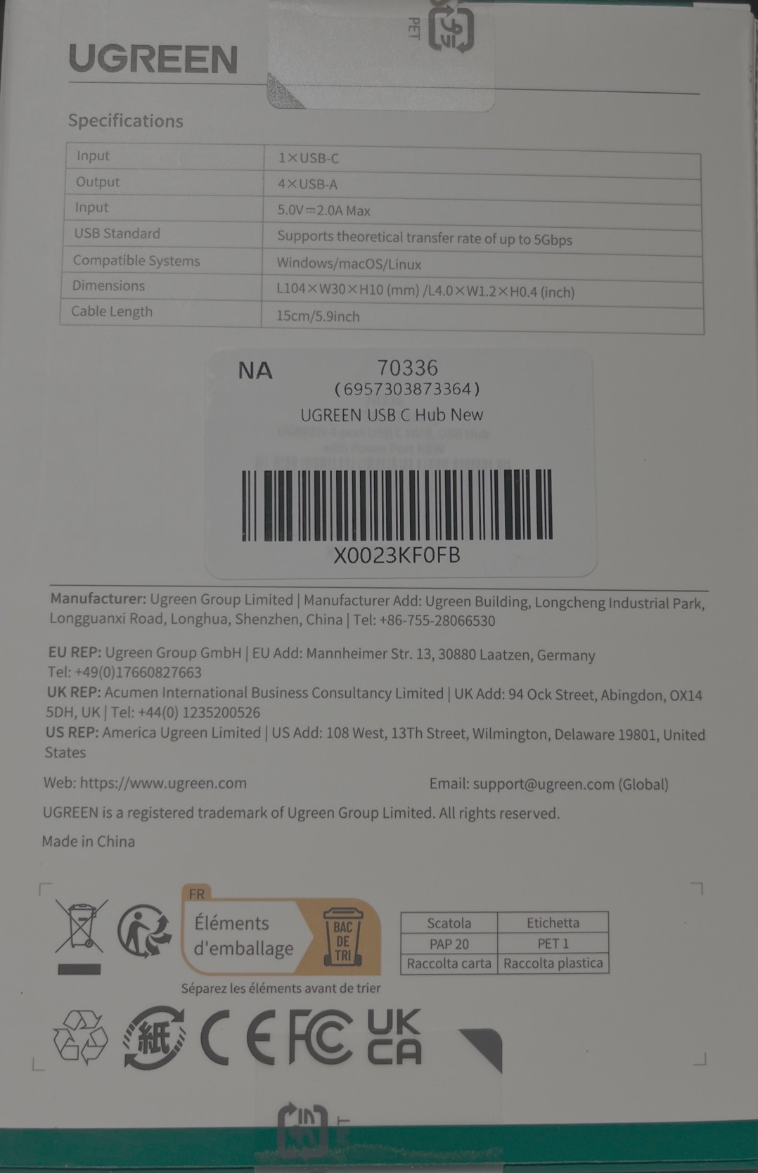 UGREEN USB-C to 4-Port USB 3.0 Hub